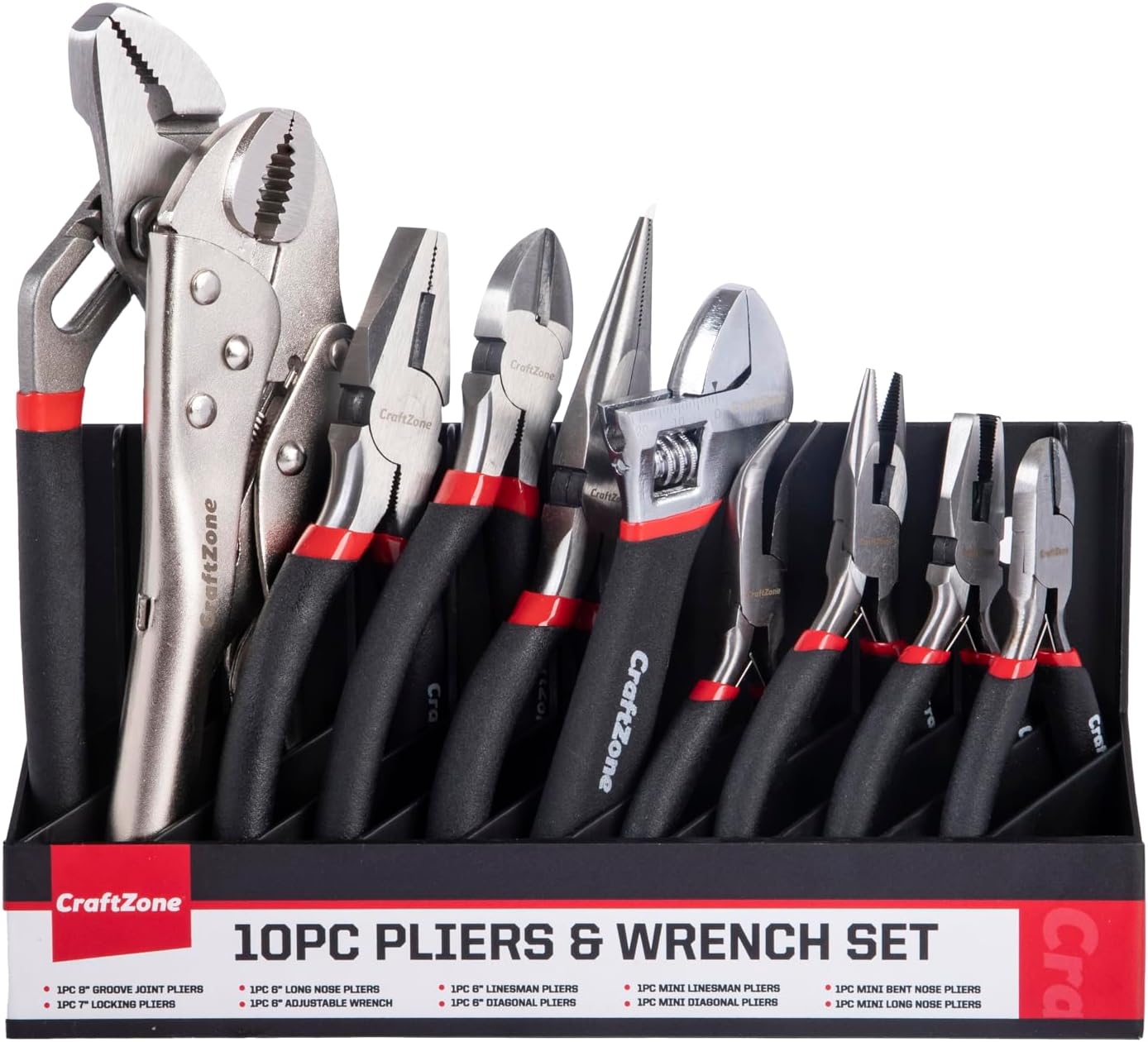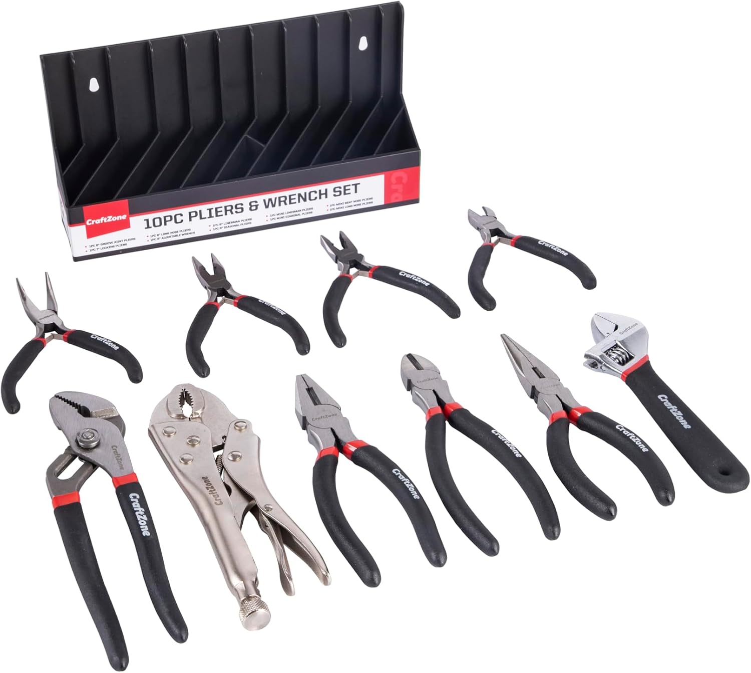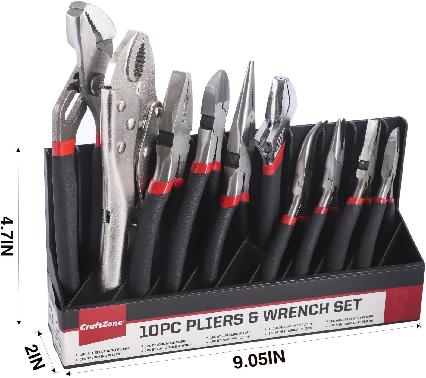 10PC Pliers&Wrench Set, Includes Locking Pliers,Long Nose Pliers,Diagonal Pliers