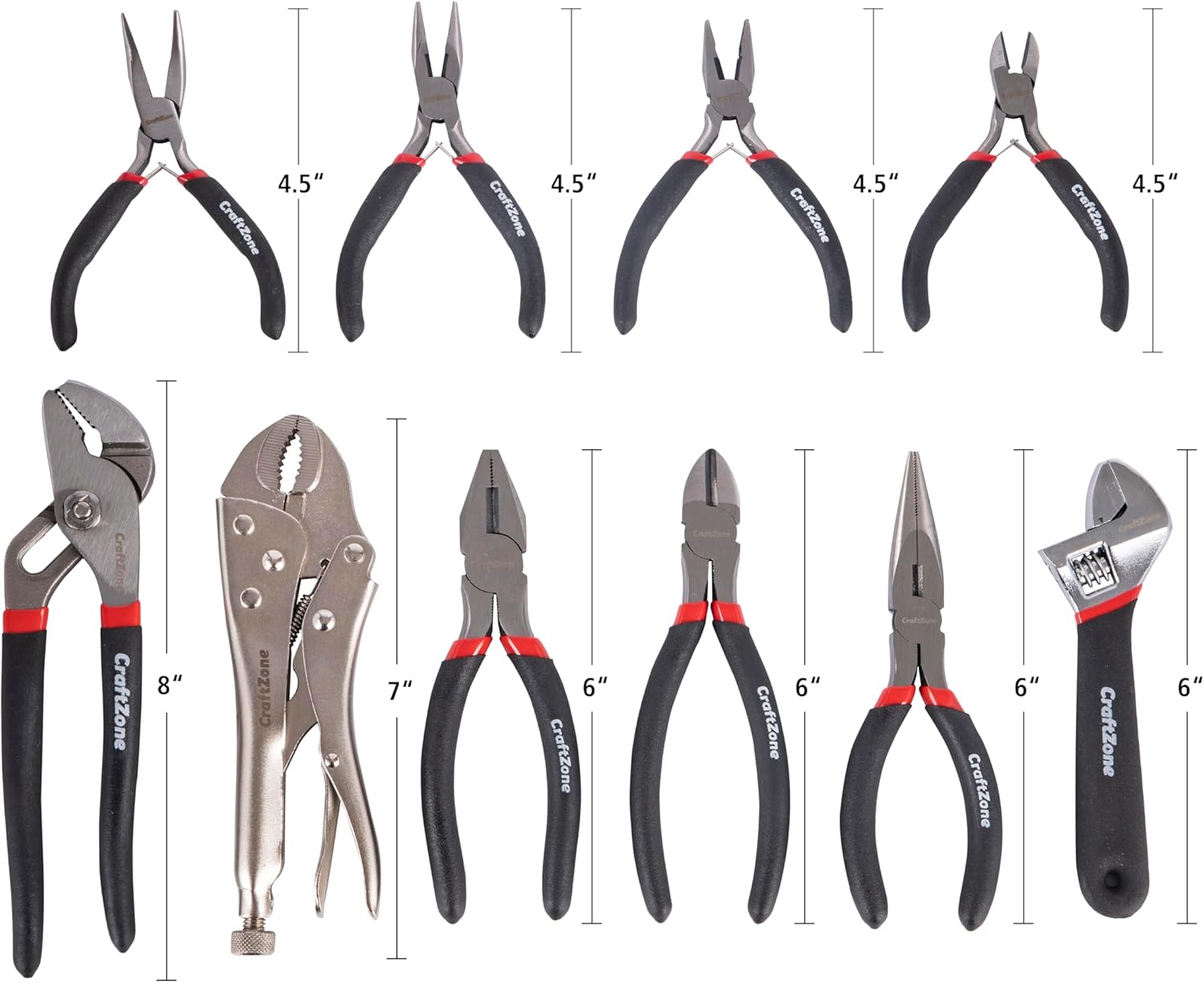 [CONVENIENT USE]Nine basic type pliers and adjustable wrench in multiple sizes for use on almost any object.
