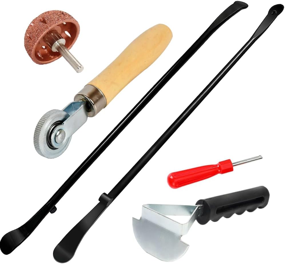 【Premium Material】- The tire changer kit is made of high-quality 40Cr steel with powder-coated surface which make the tire changing bars is more sturdy and durable to use, The solid construction make this tire mount and demount iron is built to last, ensuring long-lasting durability and reliable performance.