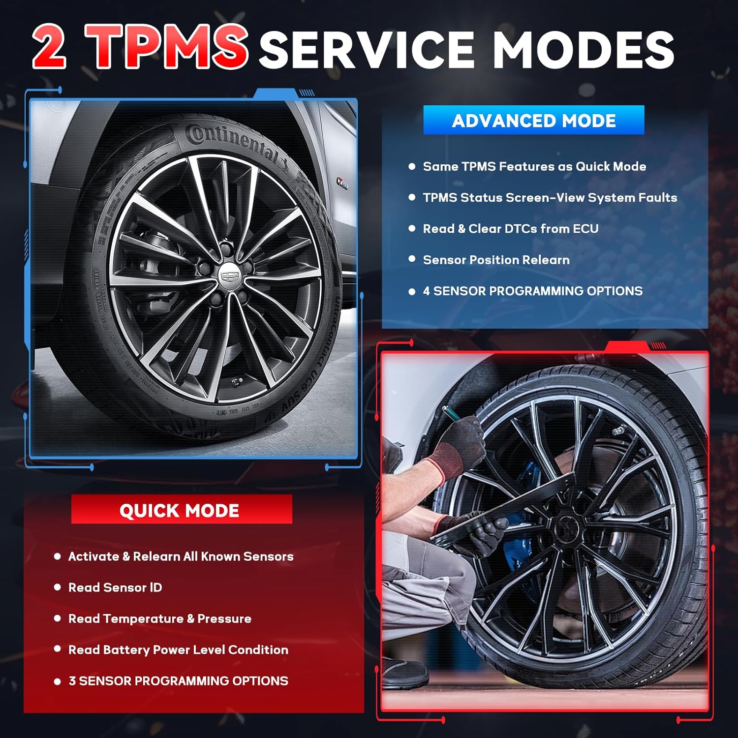 【All-In-One Professional TPMS Tool】The updated TS508WF is a comprehensive TPMS programming tool capable of diagnosing the latest vehicle models with regular updates. It includes all TPMS service functions: programming Autel MX-Sensors, sensor relearning/activation, reading sensor data, TPMS resets, and health diagnostics. The addition of Quick and Advanced Modes enhances the speed and intelligence of TPMS repairs, incorporating Tire Type and Pressure Selection into one robust tool.