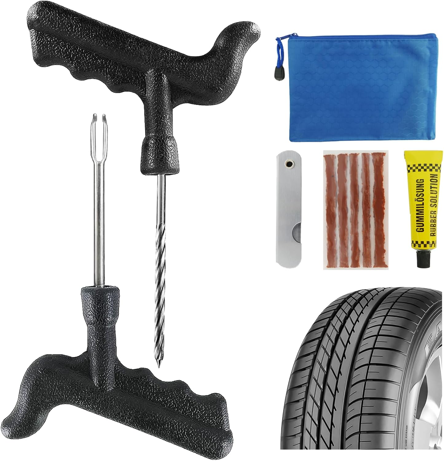 Emergency Tire Repair Kit, Comprehensive Tire Repair Kit with Rubber Plugs