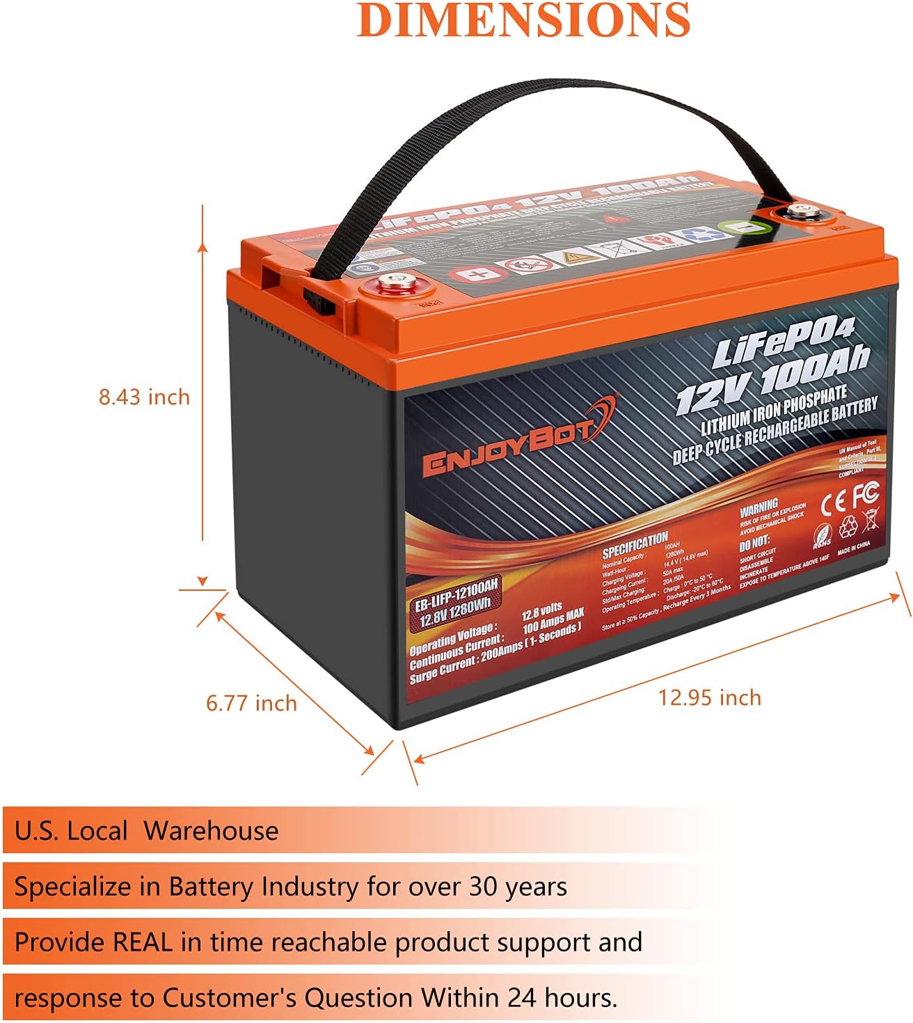 Enjoybot 12V 100Ah Lithium LiFePO4 Deep Cycle Battery, Built-in 100A BMS