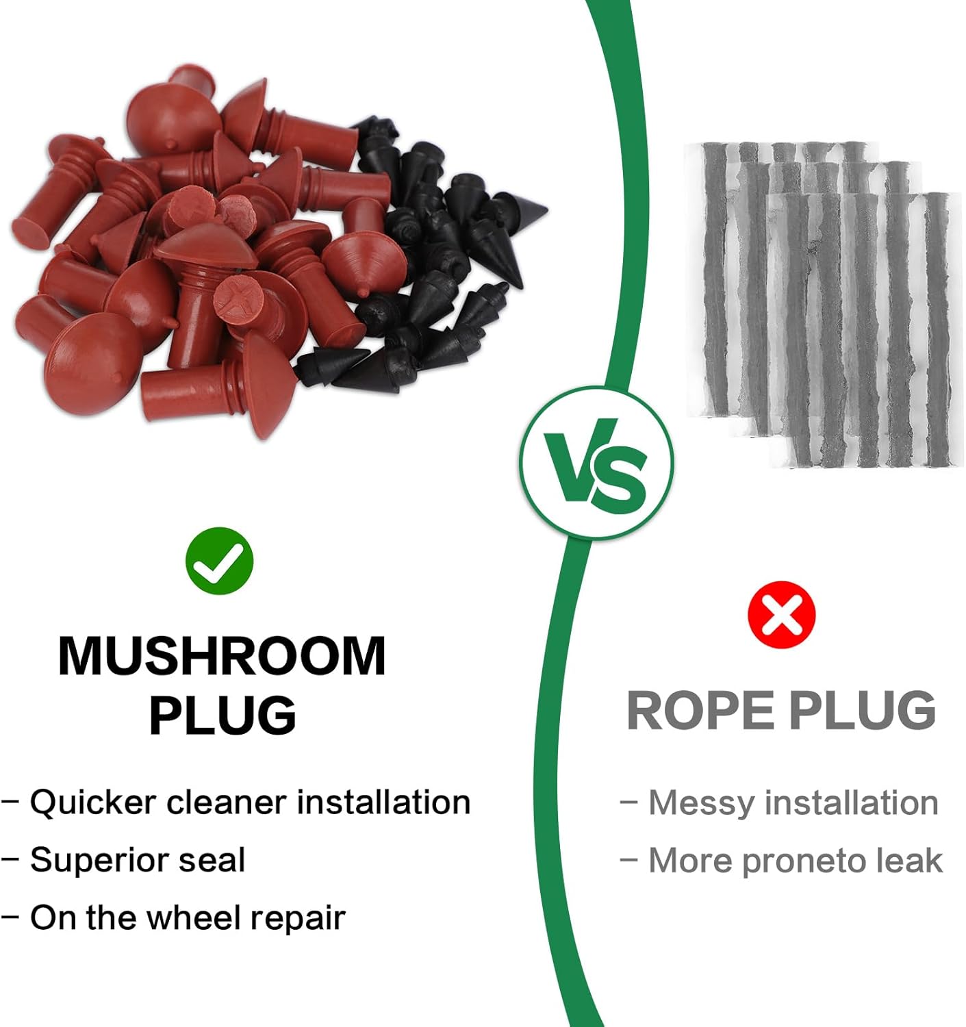 【Tire Repair Insert Plugs Size】Red Overall Size: 26 x 15mm/ 1.0 x 0.6 inches(L*D), Installation Dia: 7.4 mm/ 0.29 inches; Black Overall Size: 13 x 7mm/ 0.5 x 0.3 inches(L*D), Installation Dia: 5.6 mm/ 0.22 inches