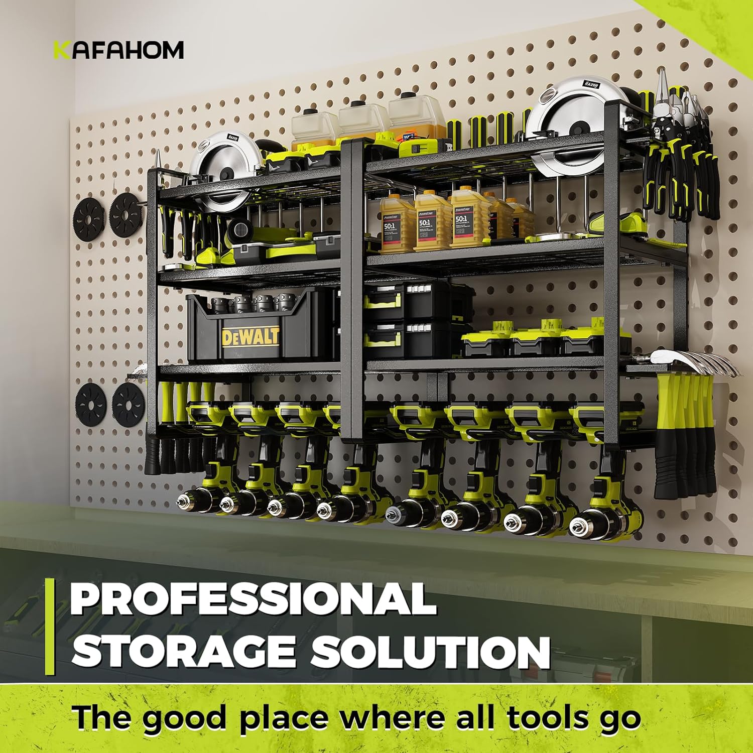 KAFAHOM Power Tool Organizer, 8 Drill Holder Wall Mount, 4 Layers Garage Tool