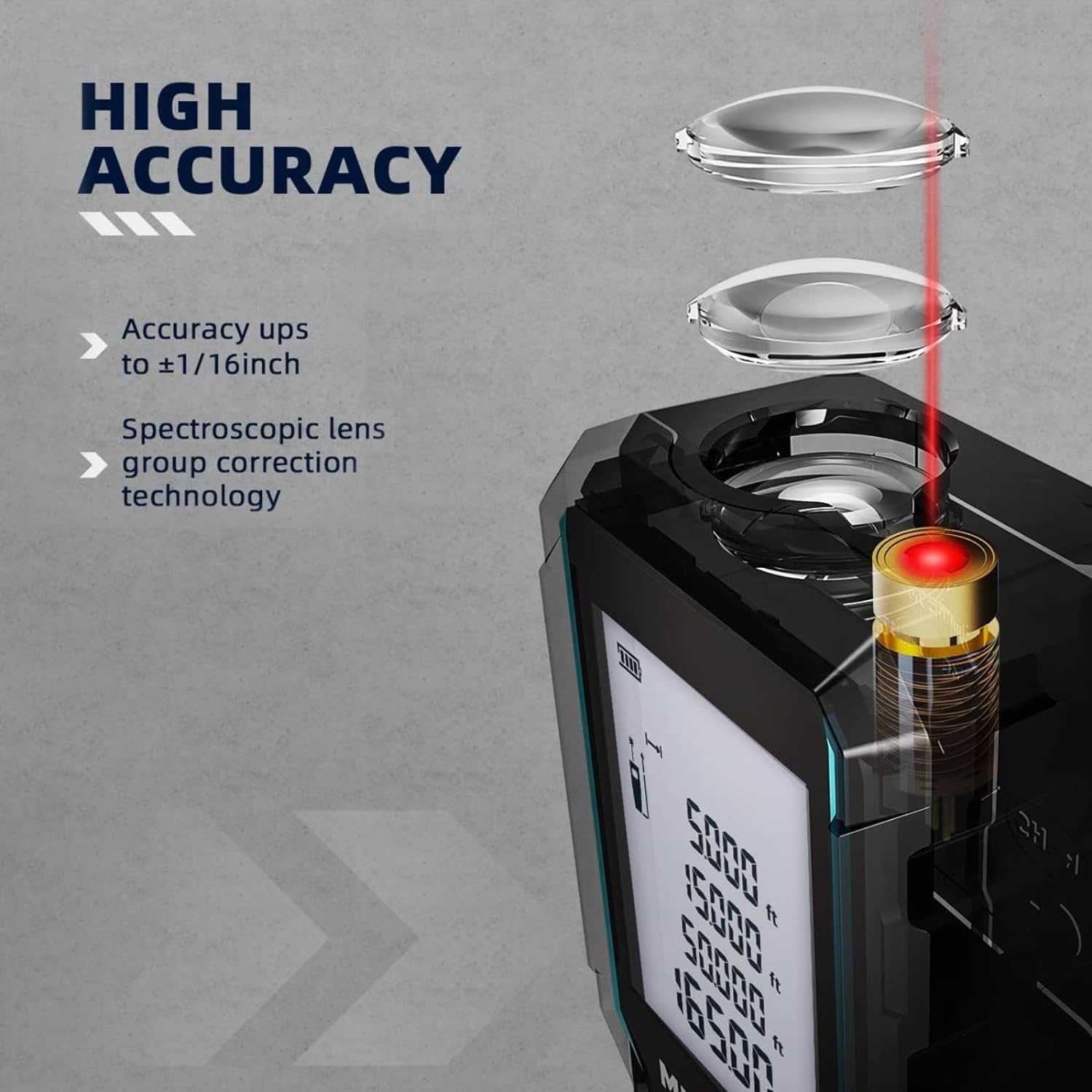 ▲HIGH ACCURACY – Easier to find the horizontal direction, the measure result is more precise.With laser precision technology, accuracy ups to ±1/16inch, measuring distance extends to 165 feet; Switchable among M/In/Ft for free adjustment