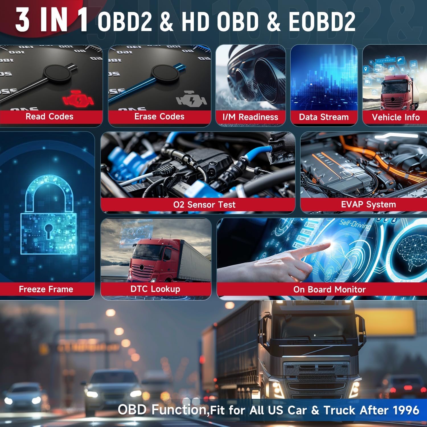 🚛【Wide Vehicle Range of Compatibility】:LAUNCH 129HD diagnostic tool is designed to work with OBD2/CAN, J1587, J1708 and J1939 compatible vehicles. It support 99% commercial vehicles and 300+ vehicle models. It fit for Cummins, Caterpillar, Detroit, International, Paccar, Volvo, Freightliner, Kenworth, Isuzu, Hino, Western Star, Sterling, Peterbilt, Maxxforce, Peterbilt, Maxxforce, Scania, Man, DAF, Mercedes-Benz, USAFORD,Aisin, Allison, Case, Credo, Deutz and so on.