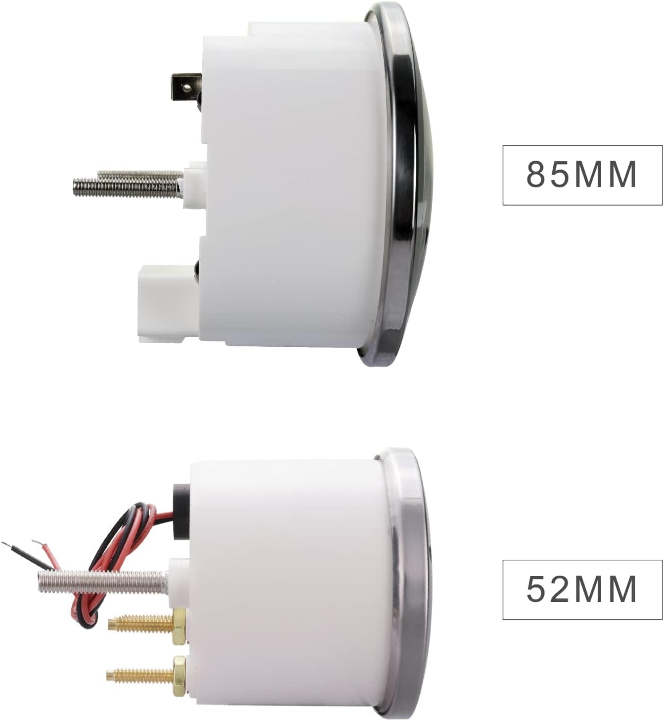 SIZES: Speedometer & Tachometer – 85mm (3-3/8″). Fuel Level, Water Temperature, Oil Pressure & Volt – 52mm (2-1/16″).