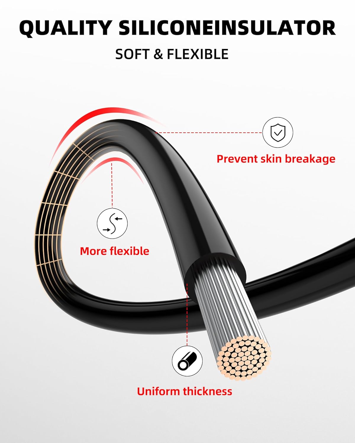 Flexible and Rrugged : The insulation layer is made of high-quality silicone rubber insulation material, with excellent bending performance and high strength. Helps protect electrical wire from impact and abrasion, effectively prevents short circuits or breaks, suitable and easy to install in a variety of applications.