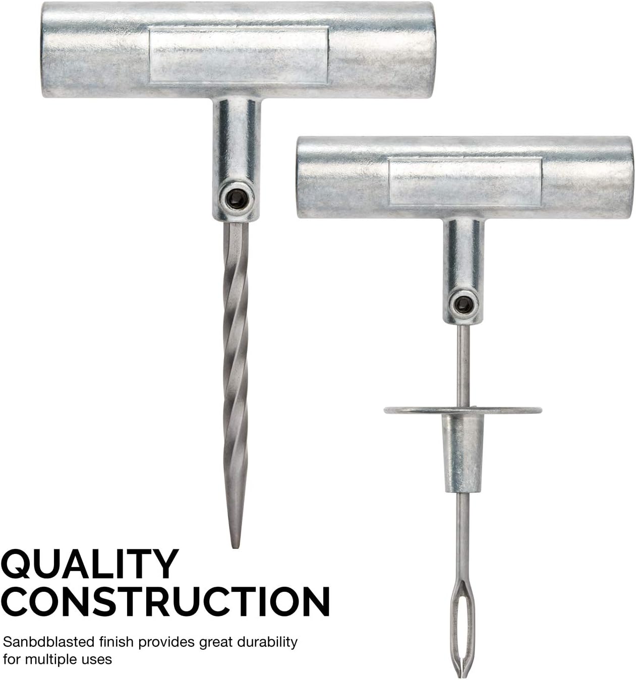 DURABLE TIRE KIT: Our fix a flat tire repair kit includes a hardened steel spiral rasp and insert needle with a sandblasted finish for extra durability to repair heavy duty tires.