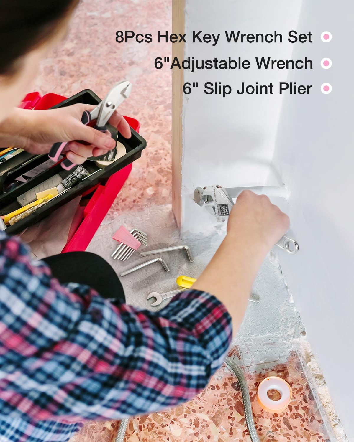 236- Piece Pink Tool Set – This household tool set comes with all the most useful and necessary tools for home maintenance and daily use. It includes a hammer, level, pliers, magnetic screwdrivers and bits, wrenches, cable ties, utility knife and much more