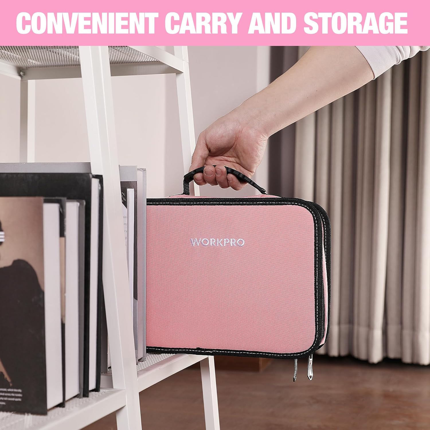 WORKPRO Pink Tool Set – 100 Pieces Pink Tool Kit with Easy Carrying Pouch