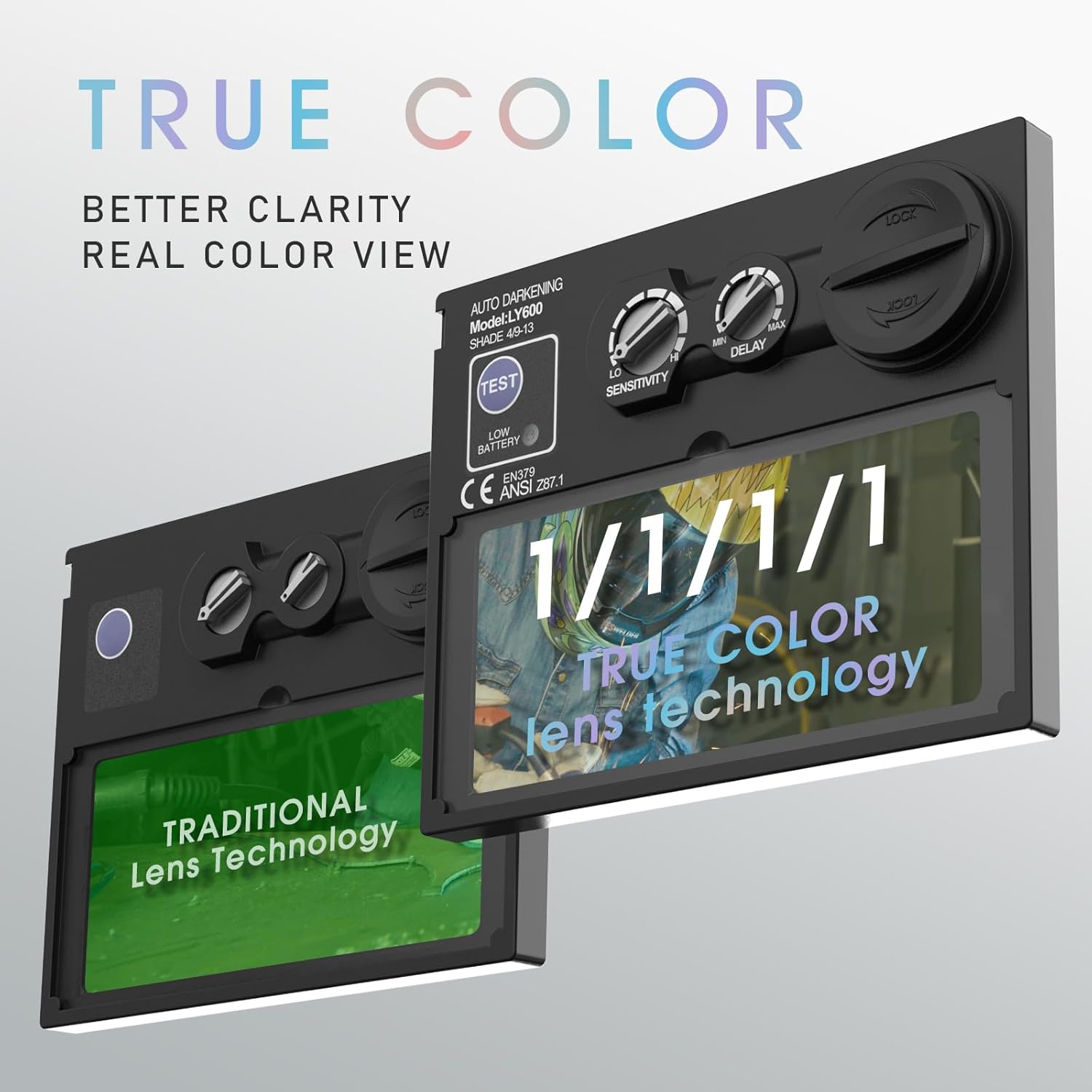 YESWELDER True Color Solar Powered Auto Darkening Welding Helmet, Wide Shade
